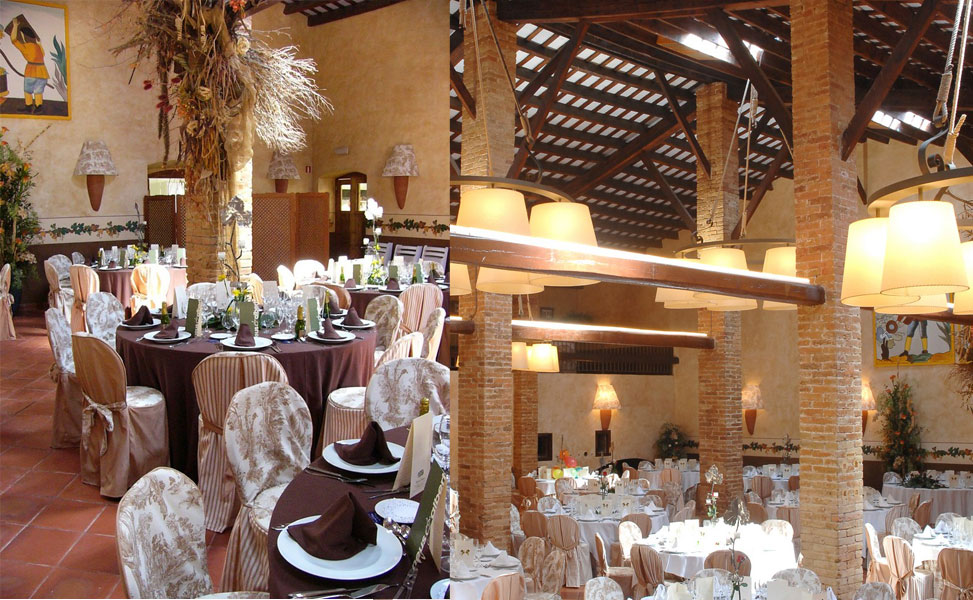 La sala de tines, amb entrada directe des del pati, s'hi pot fer l'aperitiu a cobert en cas de pluja o celebrar-hi la cerimònia civil, quedant independent del celler.